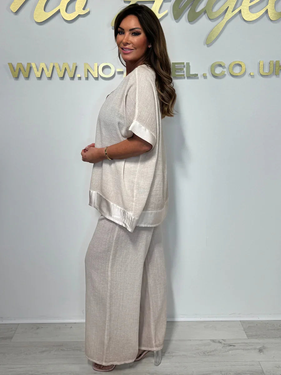 Ressentez une liberté totale toute la journée avec cet ensemble deux pièces en polyester doux comme un nuage, respirant, qui évacue la transpiration et résiste aux plis. La coupe ample sublime vos formes sans serrer, idéale pour des activités variées comme le yoga, le shopping ou vos moments détente. Alliez luxe décontracté et liberté de mouvement dans un look soigné et contemporain.