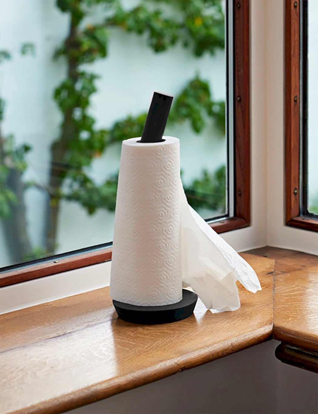 The Porter from HAY is a kitchen roll holder which allows you to lock your kitchen roll on the stand by twisting top of the wooden rod which also serves as a handle.