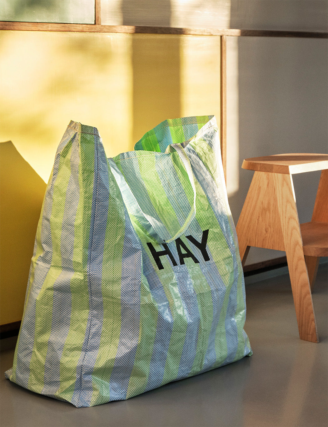 Made in recycled polypropylene, the HAY recycled candy stripe shopper is a really large bag for life, ideal for laundry or grocery shopping.